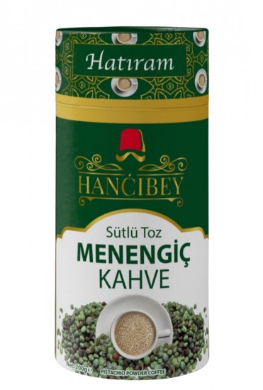 “Hancıbey sütlü toz menengiç kahvesi 200 gr hediyelik silindir kutu: Doğal, koruyucusuz ve kimyasal içermeyen hazır içim kahve. Bir fincan sıcak suya 1 ölçek ile kolayca hazırlanır.”